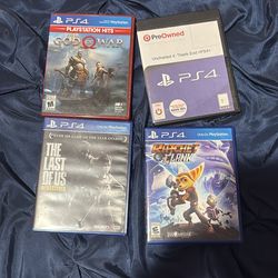 4 pack of ps4 games (uncharted and god of war have been claimed so price is lower)$70Houston, TX
