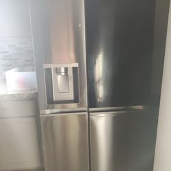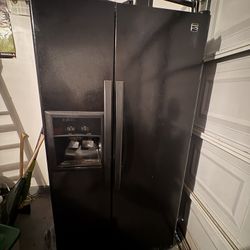 Black color side/side refrigerator with warranty delivery available fee depends on address 🏠🚛🛣️$399Missouri City, TX