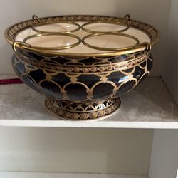 Vintage Black Gold Brass Inlay Royal Doulton Style Ceramic Bowl 4 Bottle Wine Holder$75Houston, TX