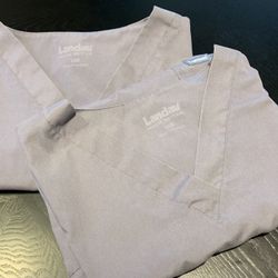 Lot of 2 Landau Scrub Tops L Gray & Lavender V-Neck Medical Uniforms$14Rosenberg, TX