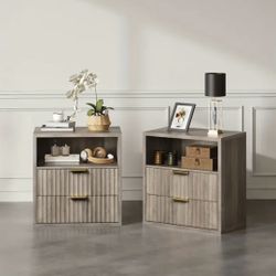 2pcs Fluted Farmhouse Nightstand Set - Narrow Space-Saving Design with 2 Storage Drawers & Open Shelf, Natural Wood Finish Hardwood Bedside Tables for$150Houston, TX