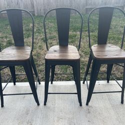 Bar height metal stools. With Wood Seats.$60Houston, TX