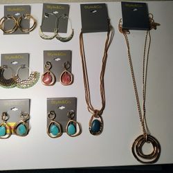 Style & Co. Jewelry Lot–Earrings & Necklaces–Gold Tone & Turquoise–New on card$150Stafford, TX
