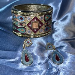 I-20. Wide Egyptian Revival Clamper Bangle Bracelet and Earrings Set$55Houston, TX