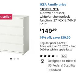 4-Drawer Dresser for Bedroom - White Wood Chest of Drawers Closet Storage Cabinet Organizer for Bedroom, Living Room, Hallway and Office$30Houston, TX