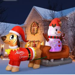 8 Ft Christmas Inflatables Outdoor Decorations Xmas Blow Up Yard Decorations Snowman with Rotating LED Lights,Dog Christmas Inflatable