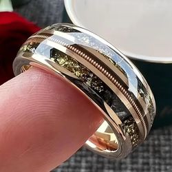 Men's Women's 8mm Tungsten Carbide Guitar String Gold Leaf Flakes Comfort-Fit Engagement Wedding Band$17Houston, TX