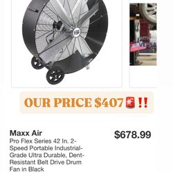 Pro Flex Series 42 In. 2-Speed Portable Industrial-Grade Drum Fan$407Houston, TX