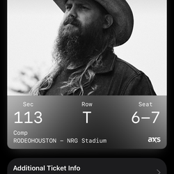 Chris Stapleton tickets Sec 113, 2 seats$300Houston, TX