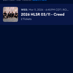 CREED RODEO TICKETS (2)$110Pasadena, TX