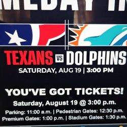 Houston Texans Vs Miami Dolphins Preseason Game $50Houston, TX
