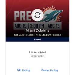 2 Tickets For Today Houston Texans Dolphins$30Houston, TX