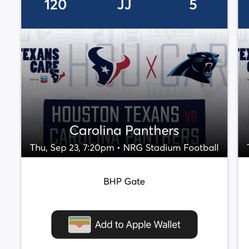 TEXANS VS PANTHERS 2 TICKETS ONLY 80 EACH$80Houston, TX