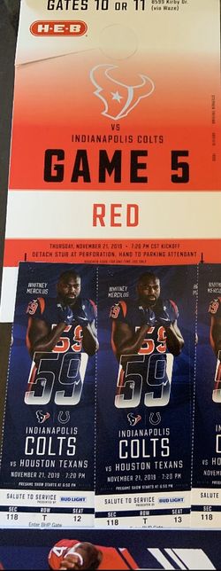 Colts VS Texans Tickets 11/21$400Houston, TX