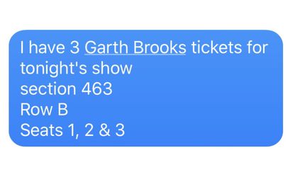 GARTH BROOKS TICKETS FOR TONIGHTS SHOW$175Houston, TX