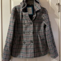 Aeropostale Coat Gray Plaid Large Wool Polyester With Removable Hood$35Spring, TX