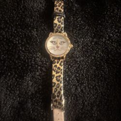 Betsey Johnson Watch Kitty Cat Face Motif Mother Of Pearl Leopard Strap See Desc$40Houston, TX