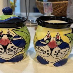 Whimsical Cat Creamer & Sugar Painted By Lynda Corneille $50Conroe, TX