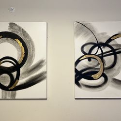 Colorful Cow Canvas Painting & Modern Geometric Wall Art$45Houston, TX