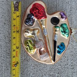 Glass Artist Paint Palette Christmas Ornament 4” Hand Blown Glitter Brushes$24Houston, TX