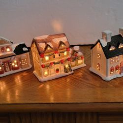 3 Vintage Illuminated Liberty Bell Christmas Hand-Painted Ceramic Village Houses.$50Houston, TX
