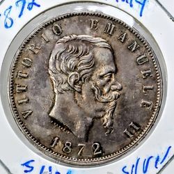 1872 Italian 5 Lire silver coin - Below Melt π±$70Houston, TX