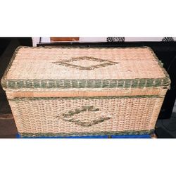 Baúl de mimbre vintage con marco y tapa de madera 13X29 pulgadas y altura mide 14$40Houston, TX