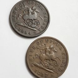 1854 , 1857 Bank Of Canady Large One Penny Coins$35Pasadena, TX