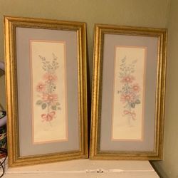 Pair Of 12in. W X 22.5in. L Mary Vincent Bertrand Signed Floral Water Color Prints Matted And Framed. $20South Houston, TX