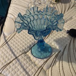 Fenton Colonial Blue glass compote candy dish featuring a ruffled edge and a thumbprint pattern$20Houston, TX