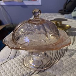 Indiana Glass Recollection pink candy dish featuring the Madrid pattern.$50Houston, TX
