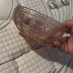 pink carnival glass bowl made by Imperial Glass in the "Beaded Block" pattern$15Houston, TX