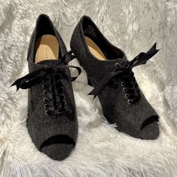 Women Shoe Size 10 Dolcetta Open Toe Lace Up Platform Wedge Velvet Heel Black$30Houston, TX