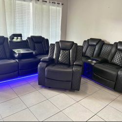 New Reclining Couches Sofa with Drop Down Table W/ Cupholder's & Smart Phone Charging Pad Storage Compartments in each arm LED Lights under footrest B$1,599Houston, TX