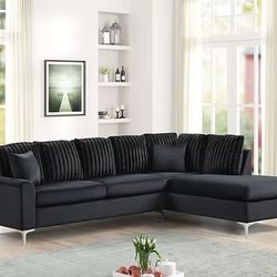 Black Sectional Velvet W Pillows New Box $649Houston, TX