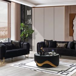 Santana Black Velvet Sofa 89" & Loveseat 69"$1,734Houston, TX