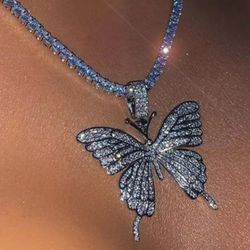 3-Pcs Iced Out 14K White Gold-Plated Cubic Zirconia Butterfly Pendant W/18"/20"22"/24"Cuban Necklace & Bracelet Set $30Houston, TX
