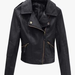Tanming women's faux leather moto biker short coat jacket in black. Medium $30Houston, TX
