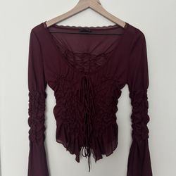 Zara Burgundy Mesh Ruffle Top$30Houston, TX