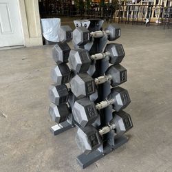 5 to 25lb Rubber Hex Dumbbell Set with A-frame Rack Included$199Houston, TX