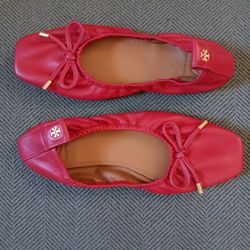 "Tory Burch " New Red Nappa Square Toe Ballet Flats$75Houston, TX