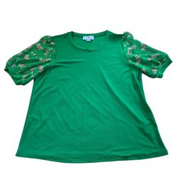 CeCe Scattered daisy short puff sleeve knit top$24Pasadena, TX