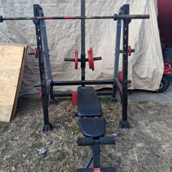 Complete Home Gym Set – Bench, Rack, Barbell, Plates & Weight Tree$200Magnolia, TX