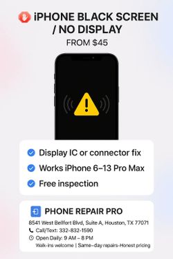 🛑 iPhone Black Screen but Phone is On? We Fix No-Display Issues – $45+$45Houston, TX