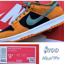 Nike Dunk Low - BLACK/NORI-CERAMIC Men’s 9.5 / Woman’s 11$100Houston, TX