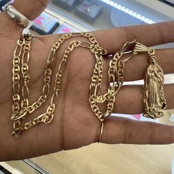 14K Gold filled chino link chain with a Virgin Mary Pendant $800Pasadena, TX
