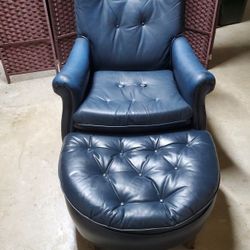 Blue Real Leather Back Reclining Chair With Matching Ottoman $45Conroe, TX