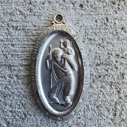 Vintage St Christopher Medal Sterling Silver 925 Catholic Pendant Protect Us 25mm$69Houston, TX