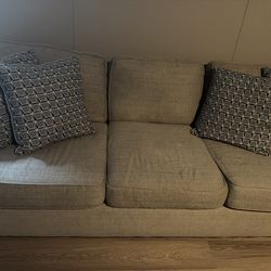 Mid-Century Modern Beige/Light Grey Sofa - Pillows Included in photo$250Houston, TX