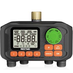 RESTMO 4 Zone Sprinkler Timer with Brass Inlet, Programmable Water Timer for Garden Hose, Automatic Control | Manual ON/Off | Rain Delay for Outdoor F$40Houston, TX